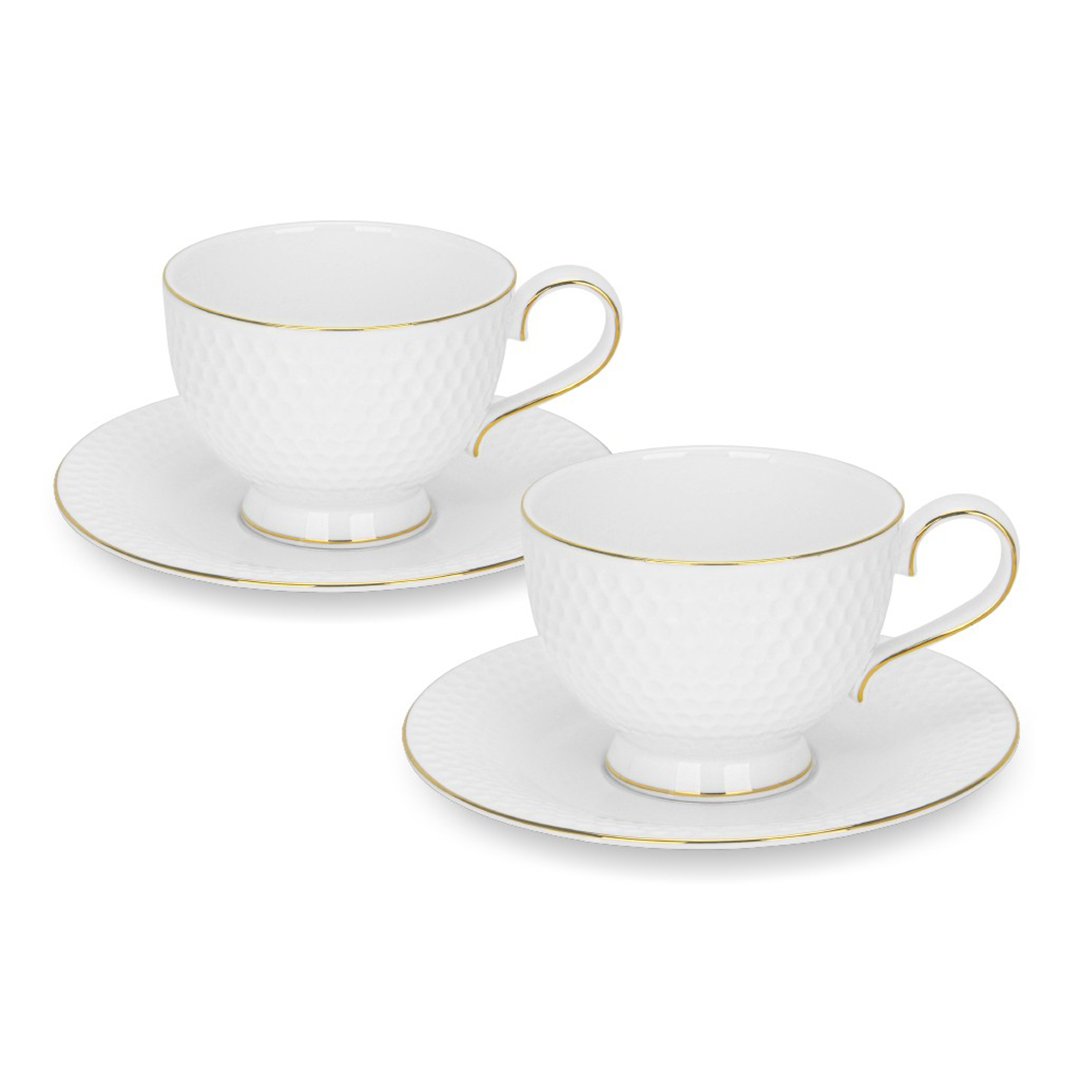 Fissman 2 porcelianiniu puodelių ir lėkštučių rinkinys Nice 220 ml